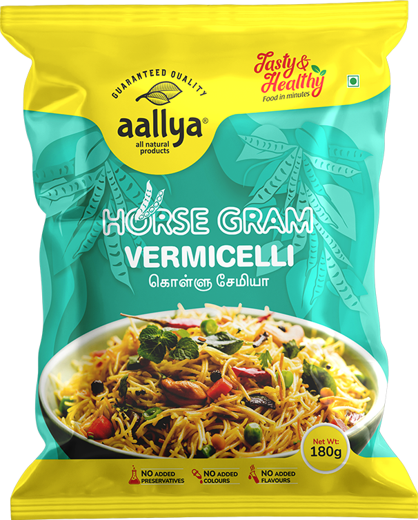 Original price was: ₹30.00.₹25.00Current price is: ₹25.00.Aallya Horse gram vermicelli(கொள்ளு சேமியா)BUY 2 GET 1 ROASTED சேமியா